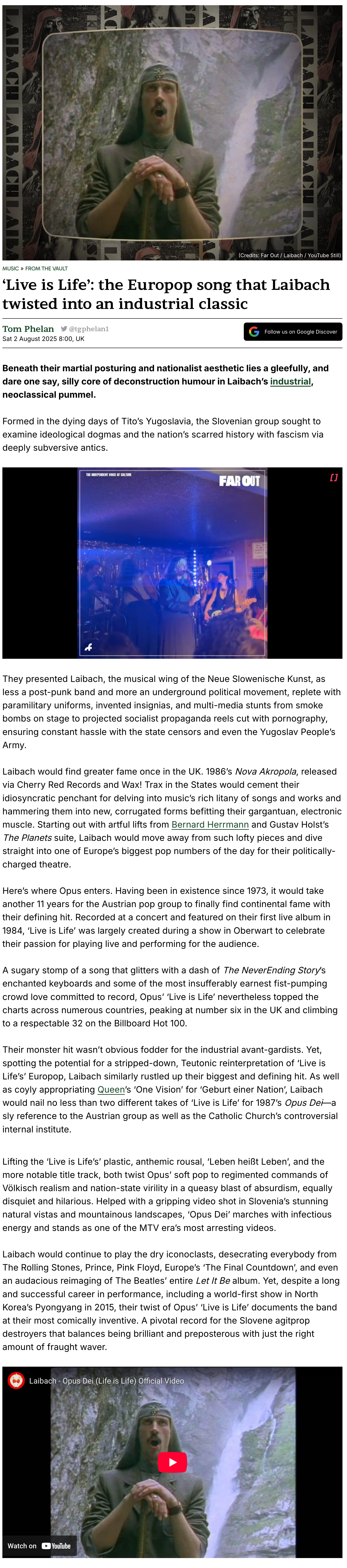 - ‘Live is Life’: the Europop song that Laibach twisted into an industrial classic / 02. 08. 2025