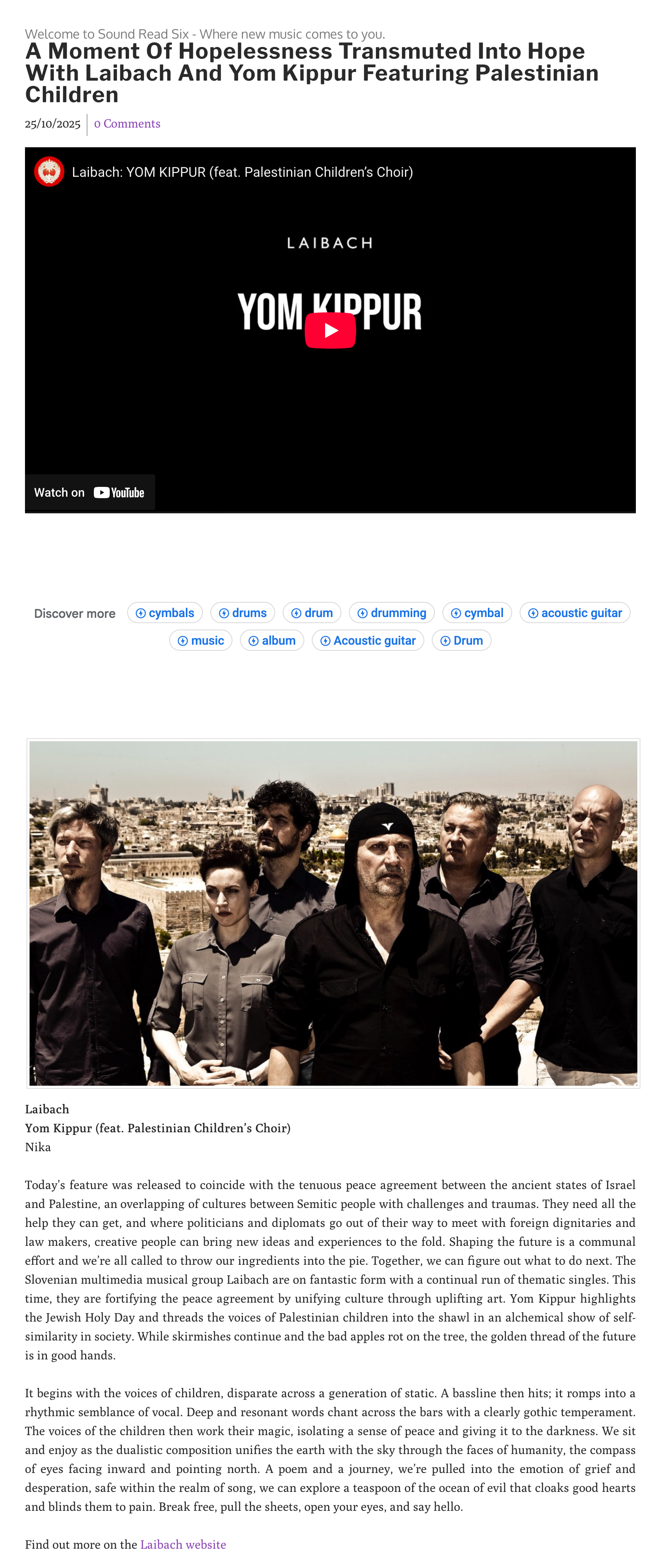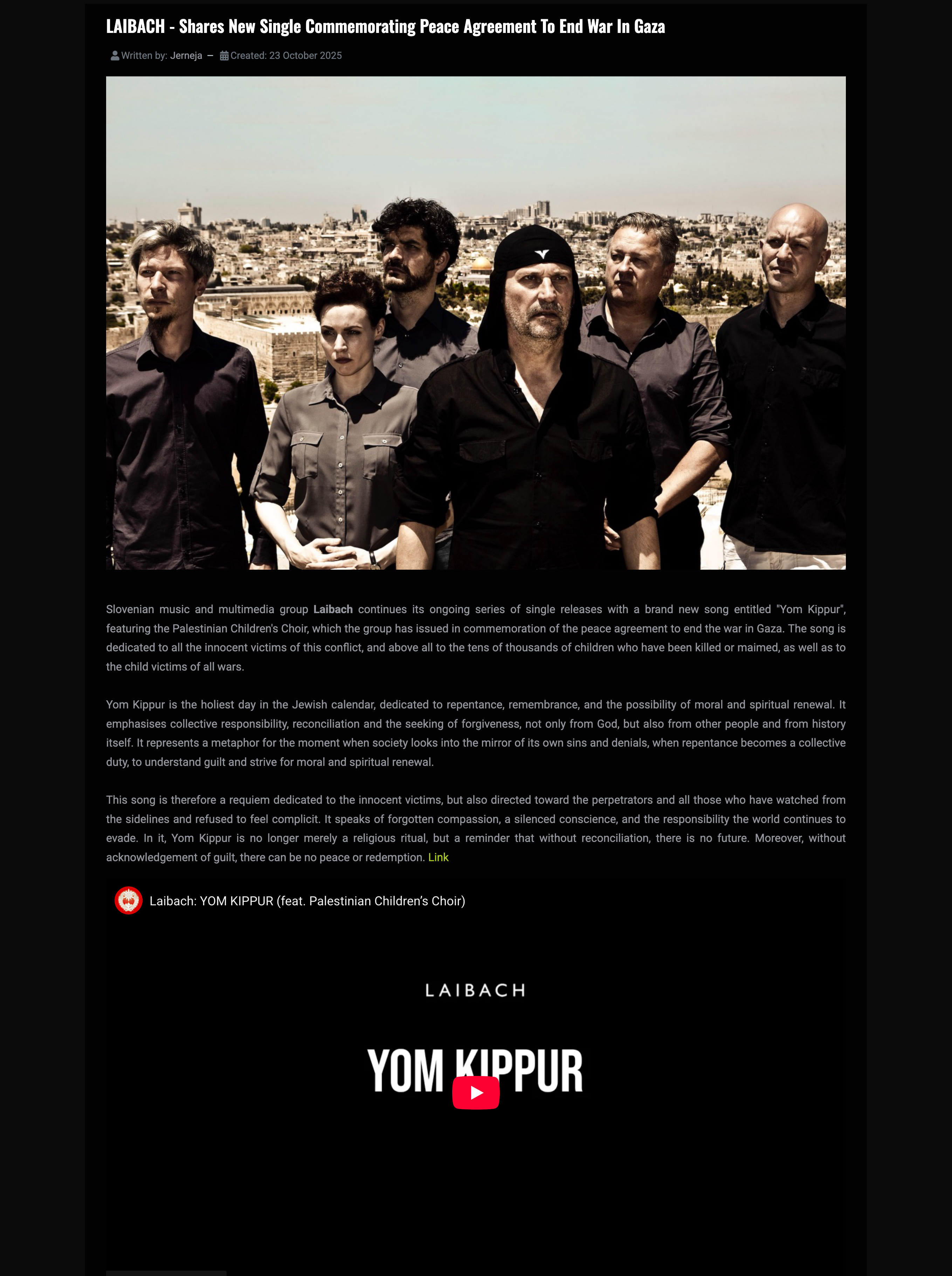 - LAIBACH | ‘Yom Kippur’ – new single by Slovenian group commemorates peace agreement to end war in Gaza / 24. 10. 2025