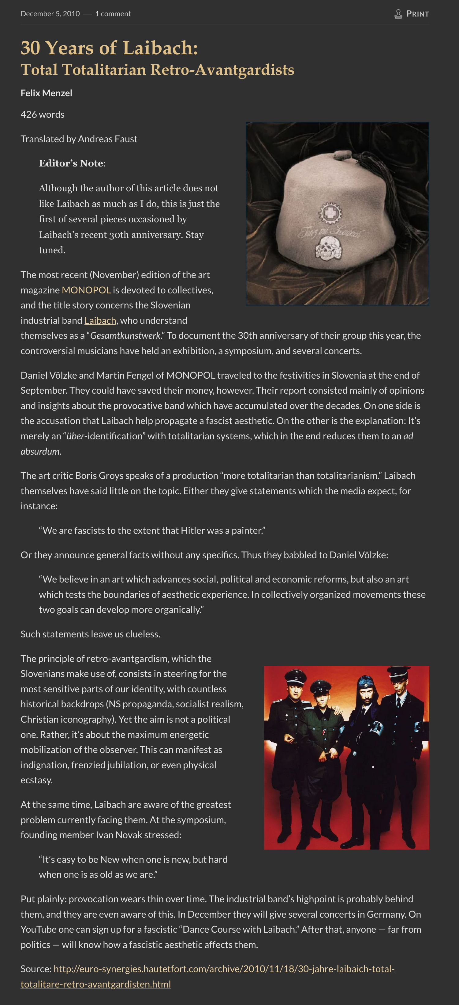 - 30 Years of Laibach: Total Totalitarian Retro-Avantgardists (by Felix Menzel)