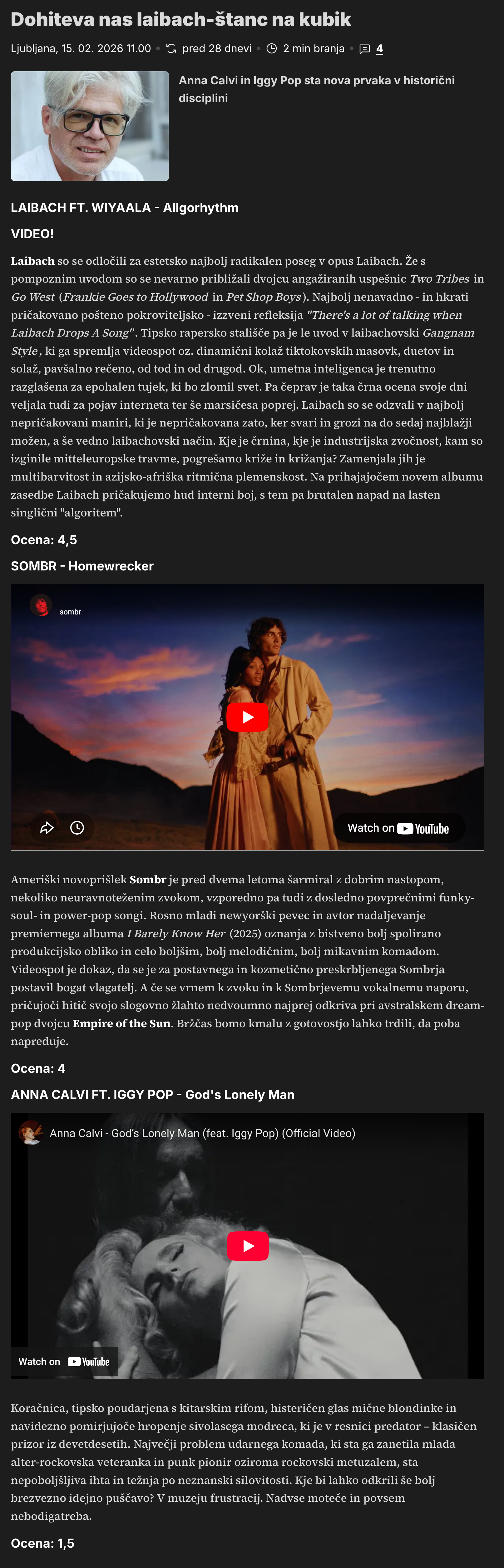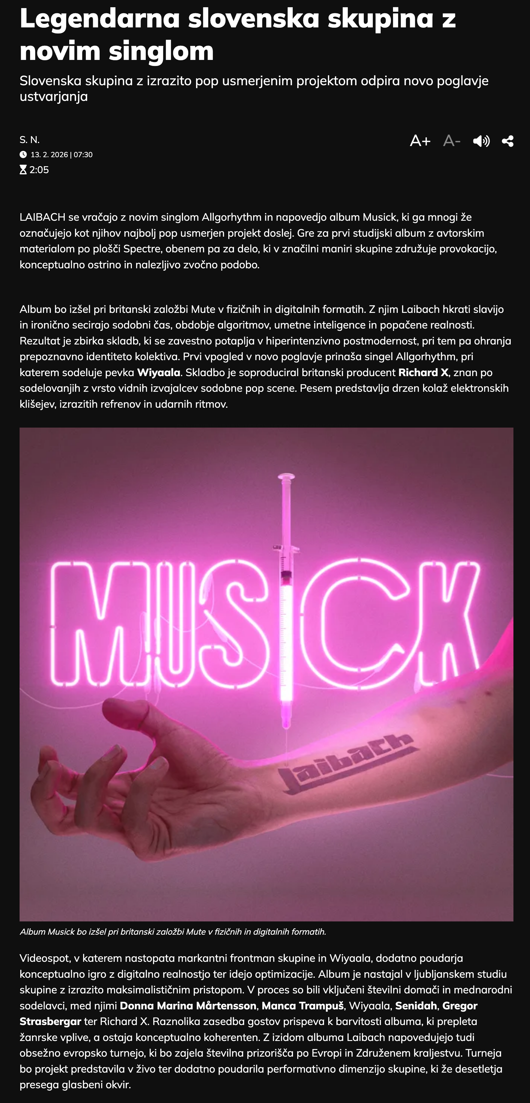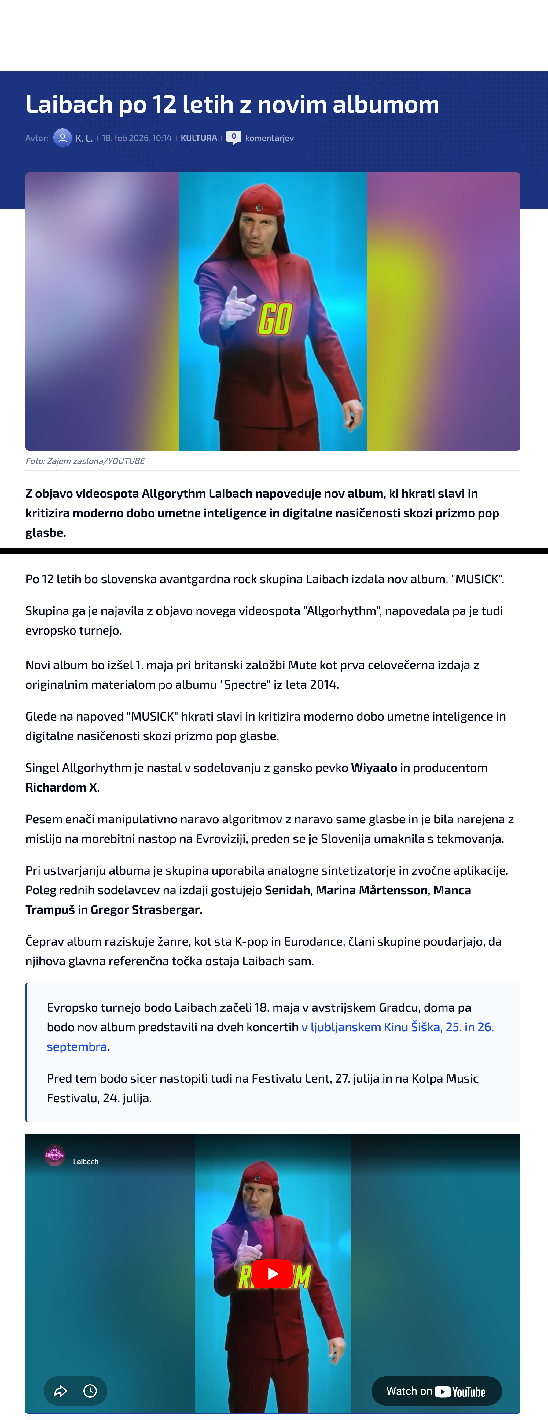 - Laibach po 12 letih z novim albumom / 18. 02. 2026