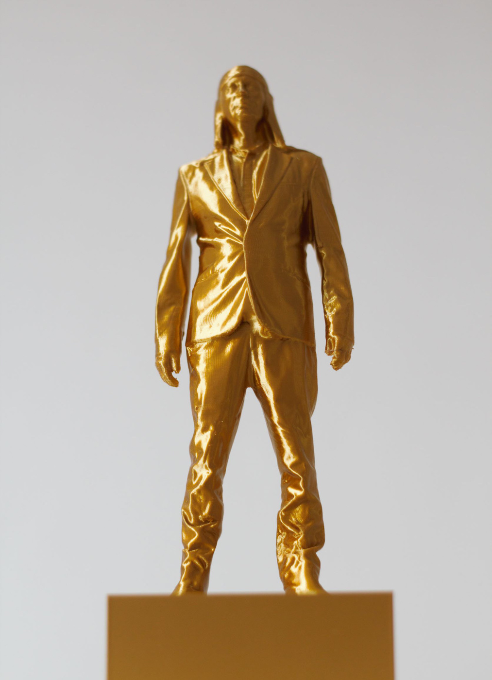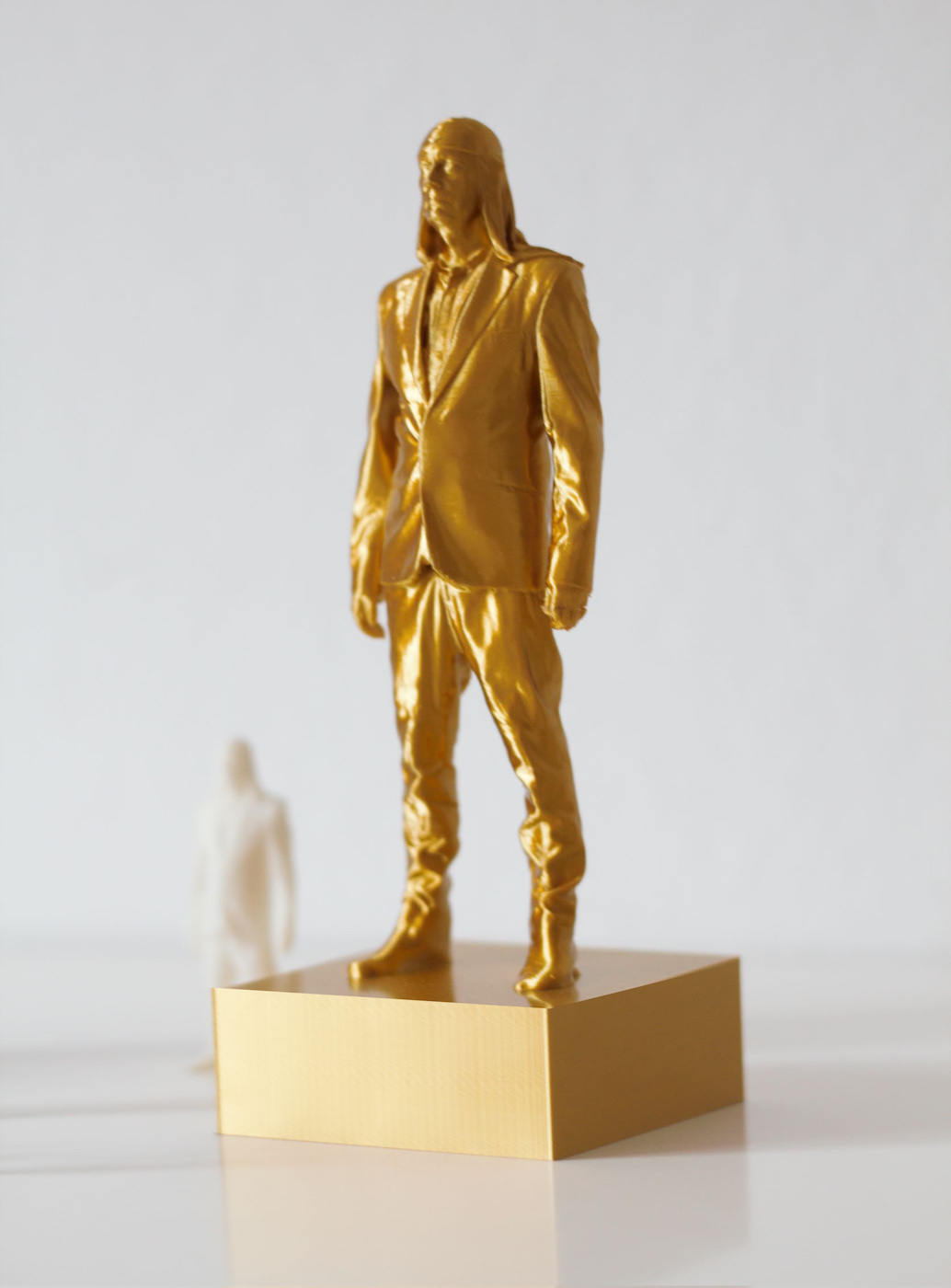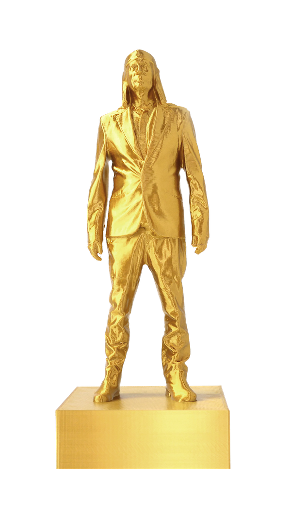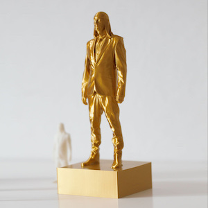 The golden version of iconic Laibach frontman statuette (as seen in the video Honourable, Dead or Alive, When Following the Revolutionary Road) is made with high detail 3d printer. The limited edition item is now available on Laibach WTC.