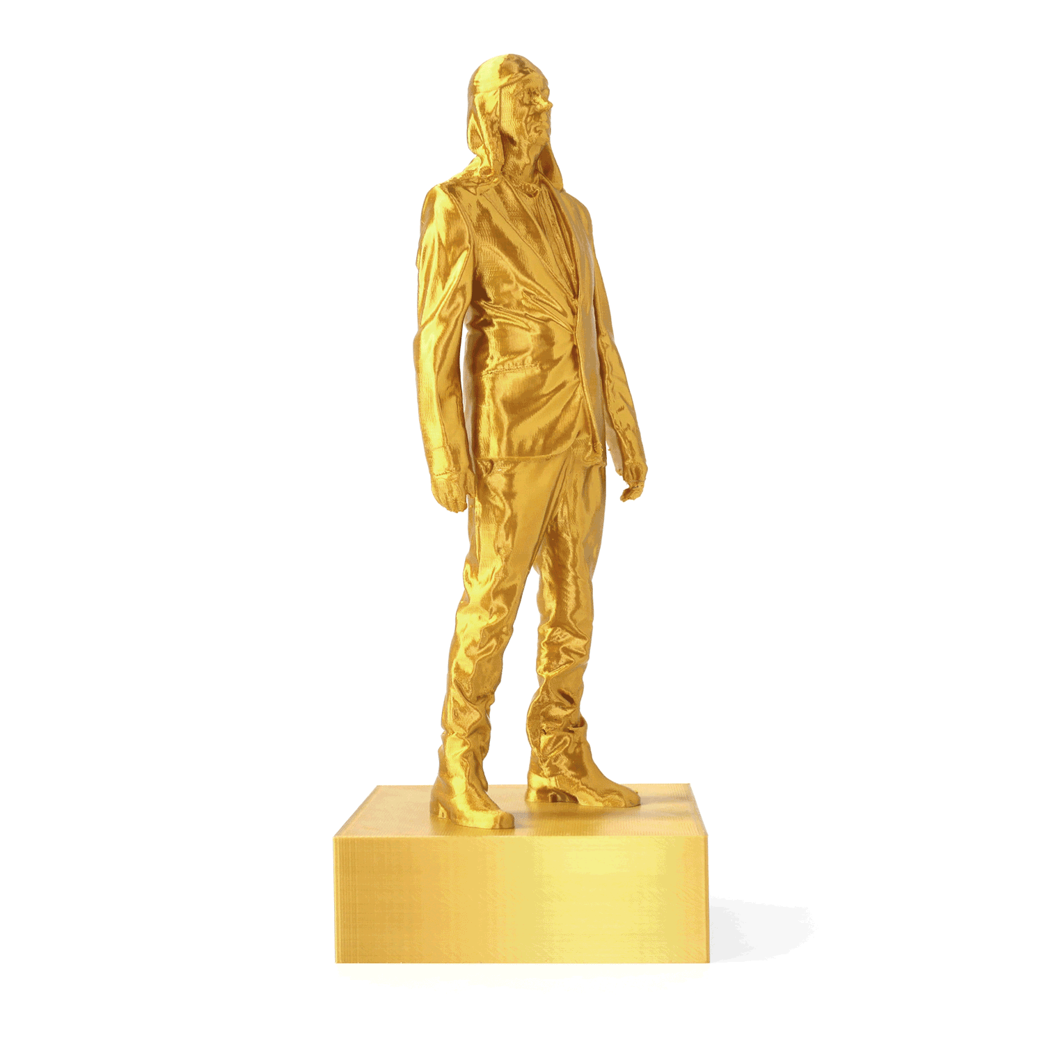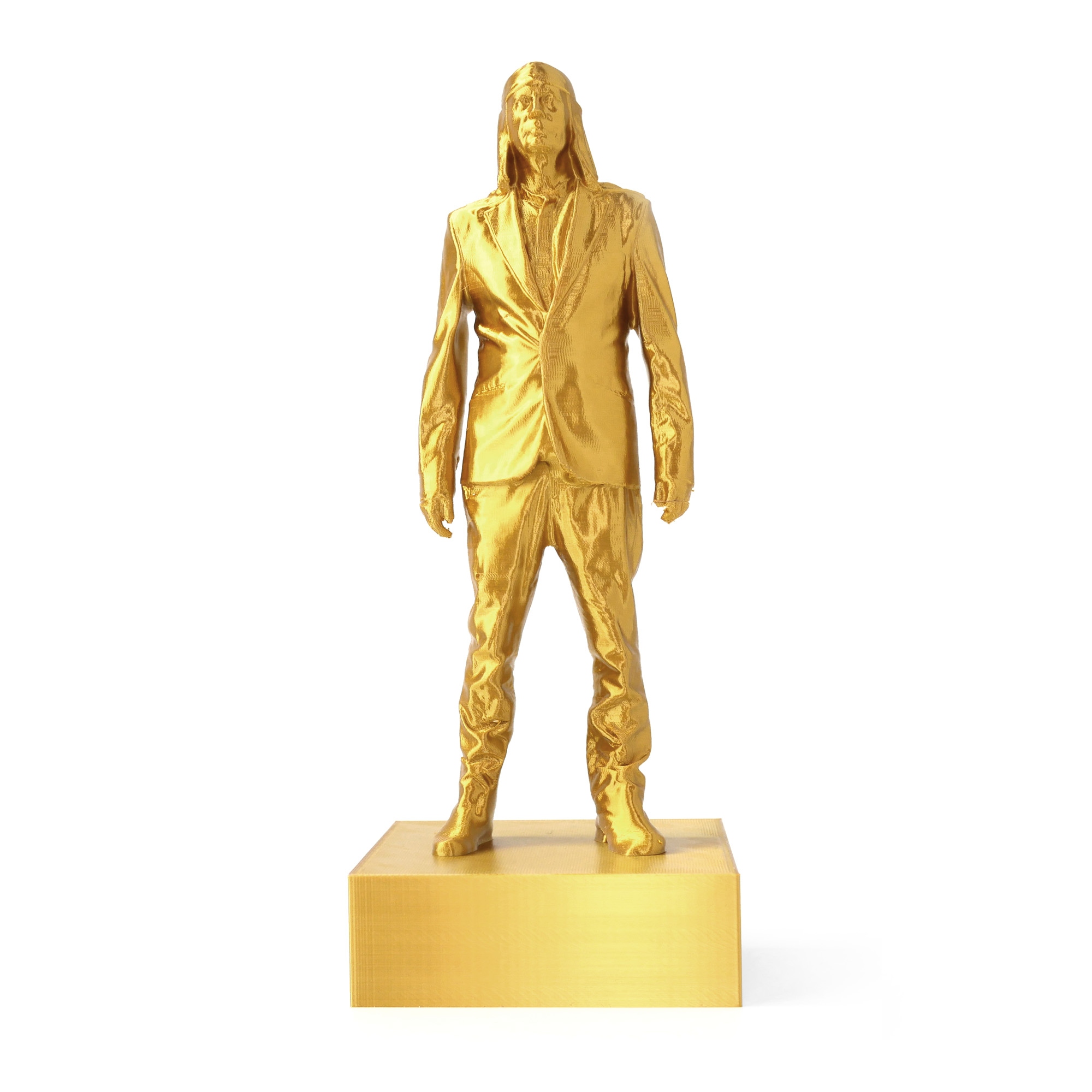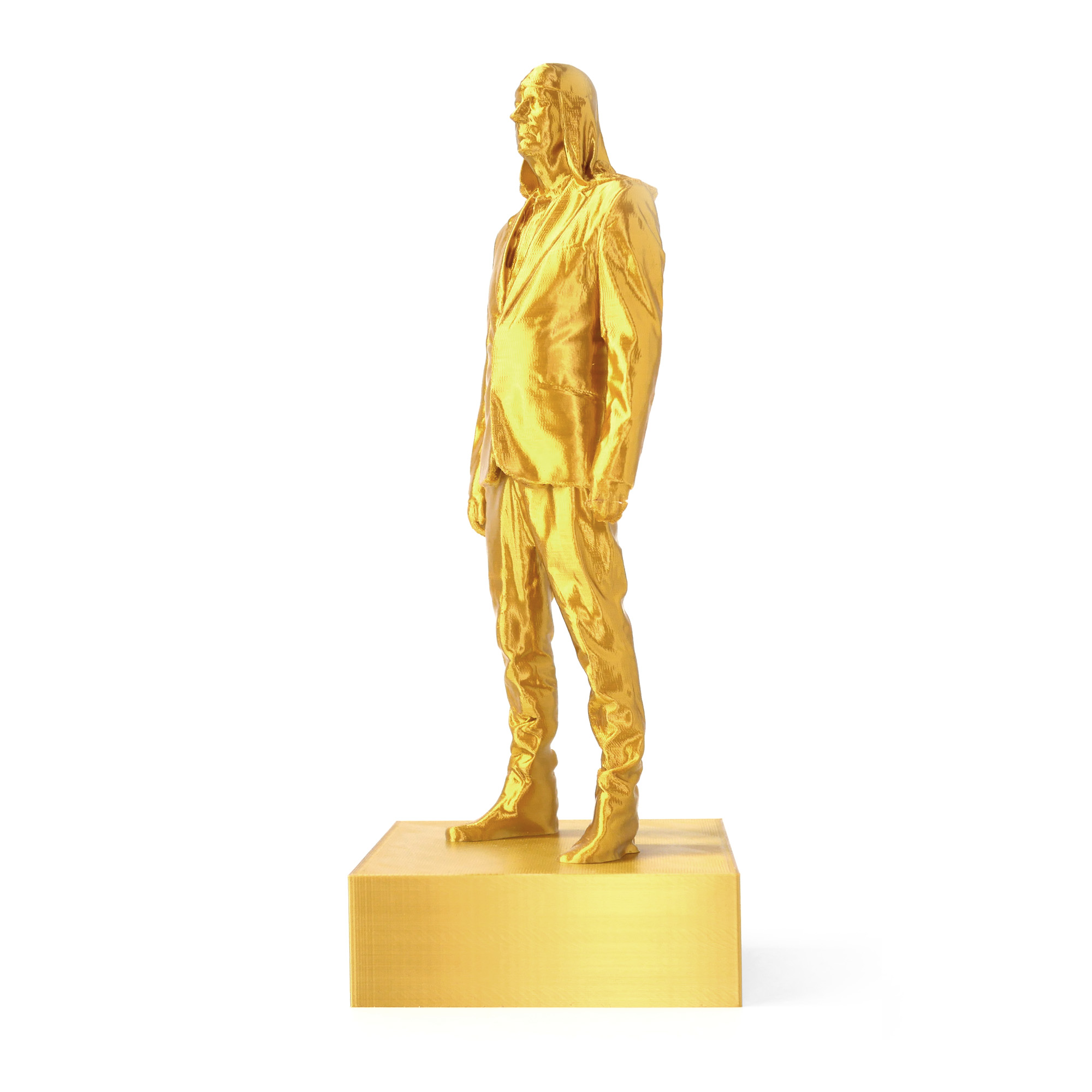 The golden version of iconic Laibach frontman statuette (as seen in the video Honourable, Dead or Alive, When Following the Revolutionary Road) is made with high detail 3d printer. The limited edition item is now available on Laibach WTC.