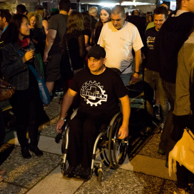 Niko Alm with Laibach’s (Volk) badge in Austrian Parliament