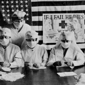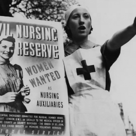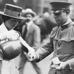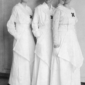 Red Cross nurse in the Baltic shaved her head as protection against typhus, 1920.